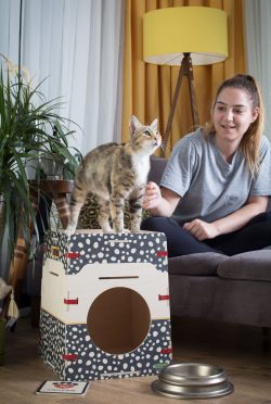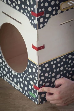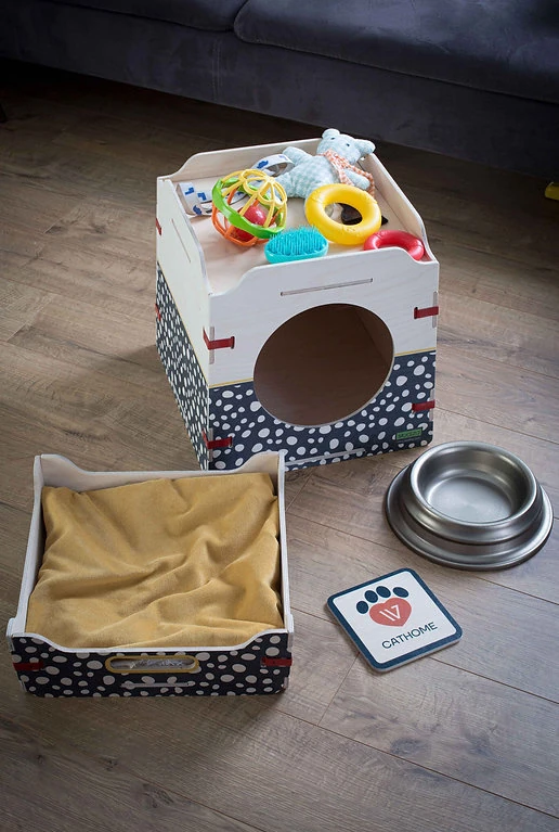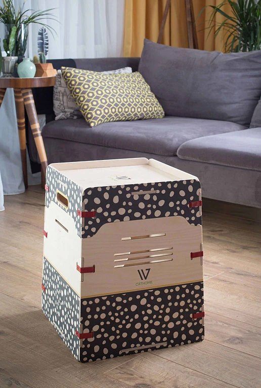 Security and order in one: "Marble Black" stylishly combines a cat house and storage for the living area.