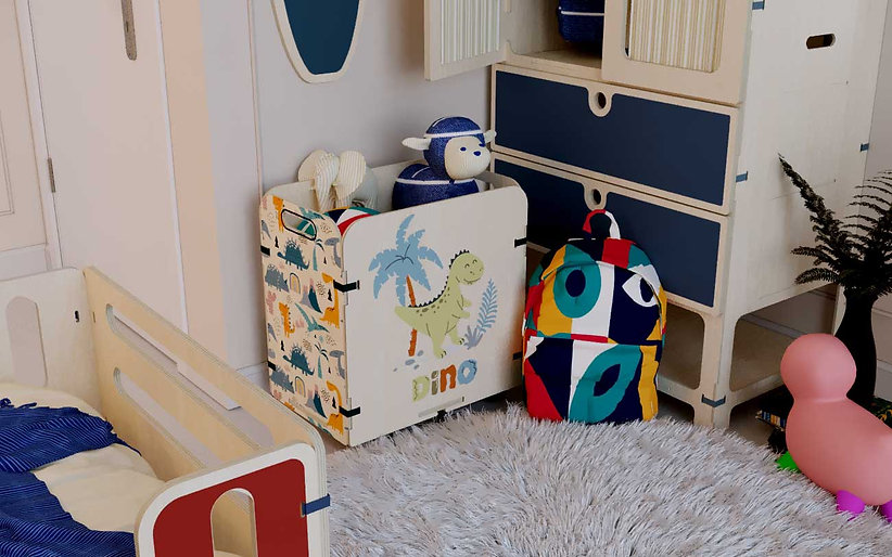 Großer Stauraum, fröhliches Dino-Design: Die »Toybox XL Dino« erleichtert Aufräumrituale und sorgt im Kinderzimmer schnell für sichtbare Ordnung.