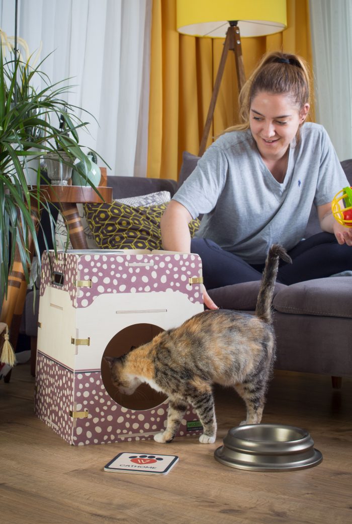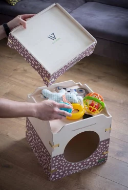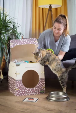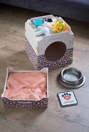 Zwei-in-eins: Katzenhaus mit Aufbewahrungskiste